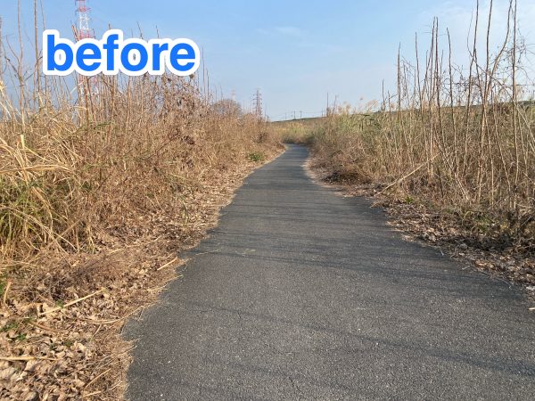 【ハーフの7km付近は草木が茂っていて走路が狭くなっていたので除草作業を実施】