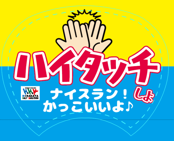 ぜひハイタッチうちわを手に入れてランナーに声援をお願いします。もしよろしければ、ランナーの方は声援に答えてハイタッチをお願いします!
